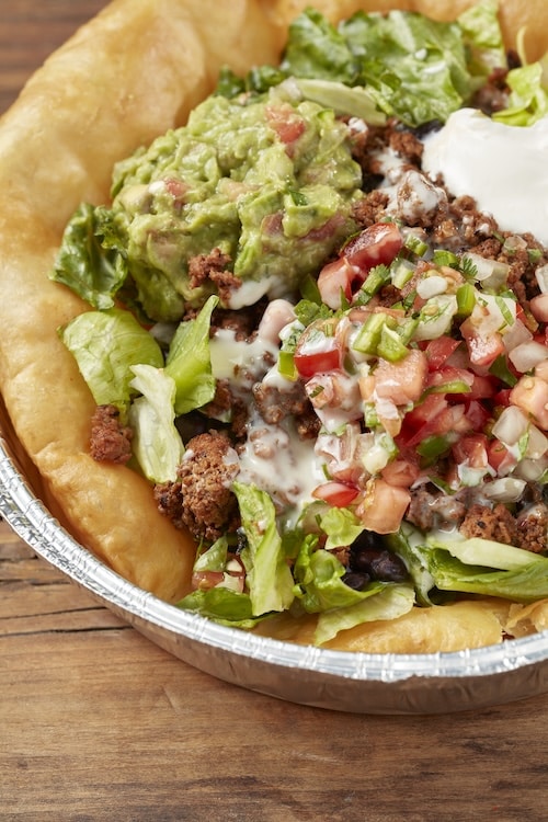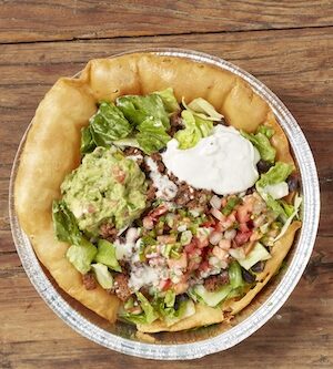 Starting with a crispy tortilla shell, this delicious Taco Salad is made with 100% certified Angus ground beef, freshly cooked black beans, lettuce and drizzled with Willy’s famous cheese dip. Then topped with sour cream and our housemade pico de gallo and guacamole.